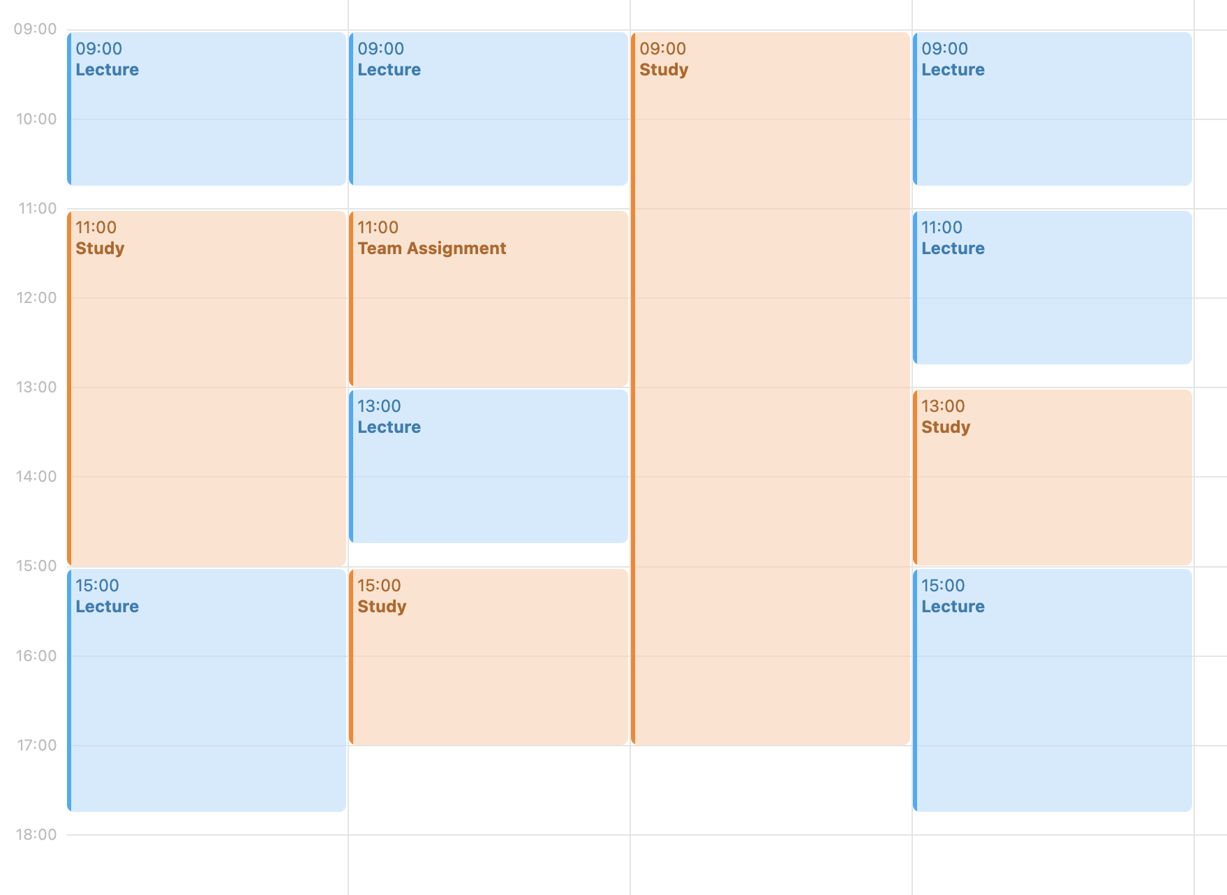 (in blue are the lectures and in orange is my self devoted study time 🤓)